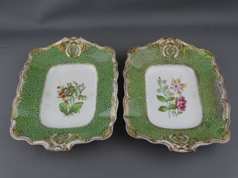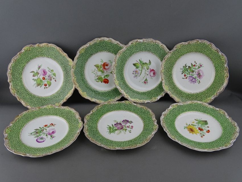 A COPELAND & GARRET BOTANICAL DESSERT SERVICE with gilt highlighted shagreen style decoration, to include two 28 cms serving dishes and thirteen 23.5 cms diameter plates