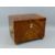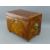 A GEORGIAN MAHOGANY TEA CADDY, rectangular form with ring handles on brass bun feet, with inlaid string edging, 14.5 cms high, 20 cms wide, 13 cms deep