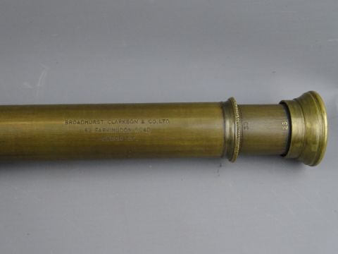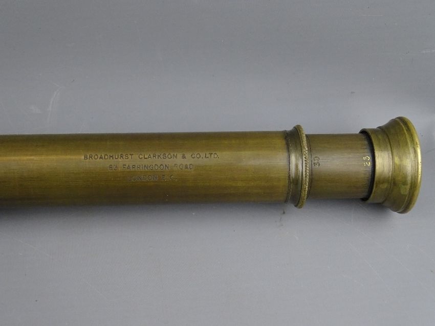 A LEATHER CASED FOUR DRAW TELESCOPE by Broadhurst, Clarkson & Co Ltd, London, with lens caps, 84 cms long extended