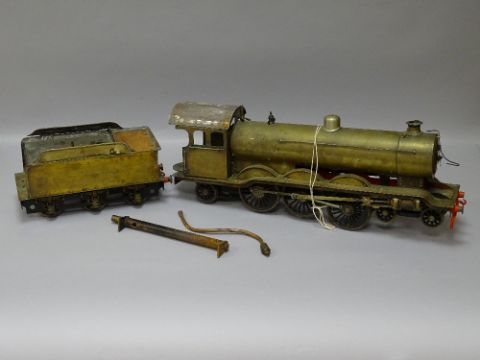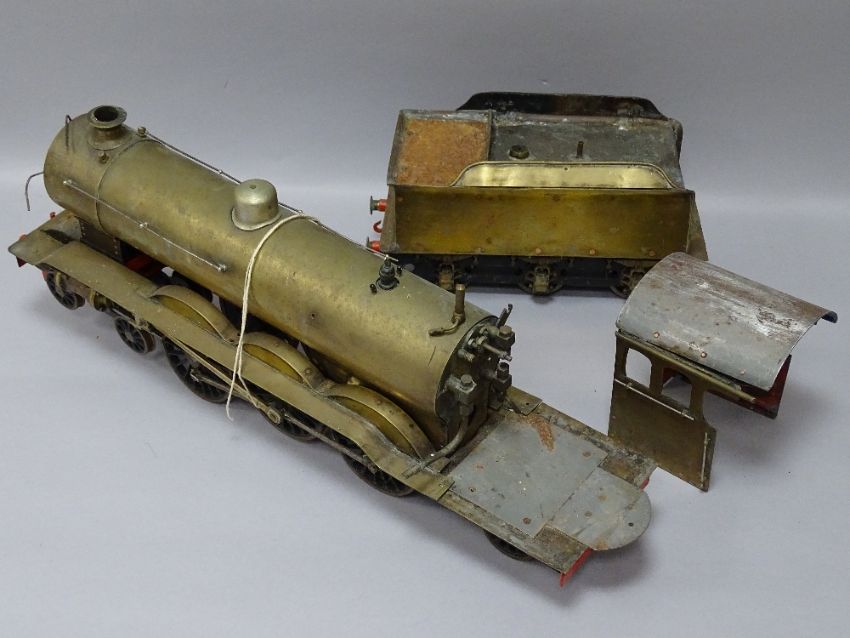 A SCRATCH BUILT MODEL STEAM LOCOMOTIVE & TENDER (incomplete project), 87 cms long overall