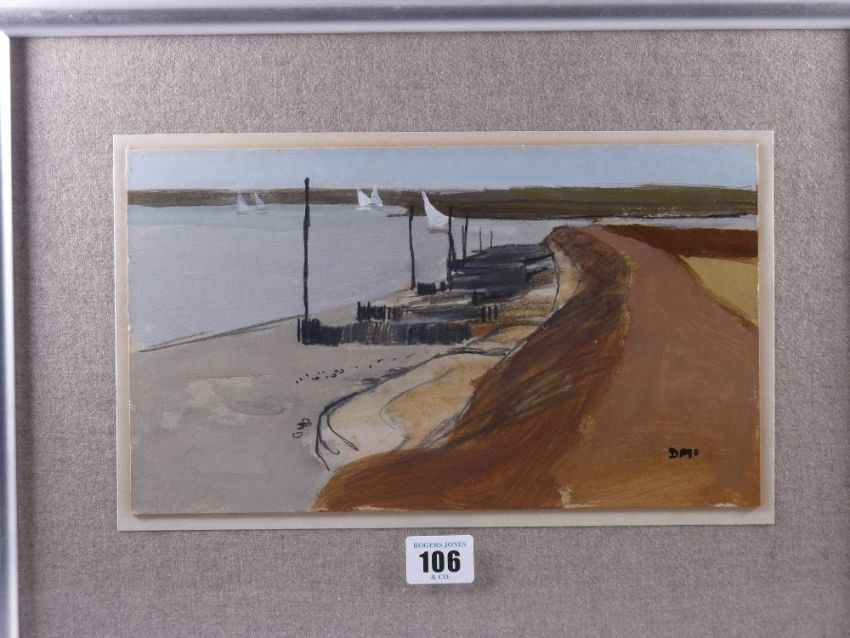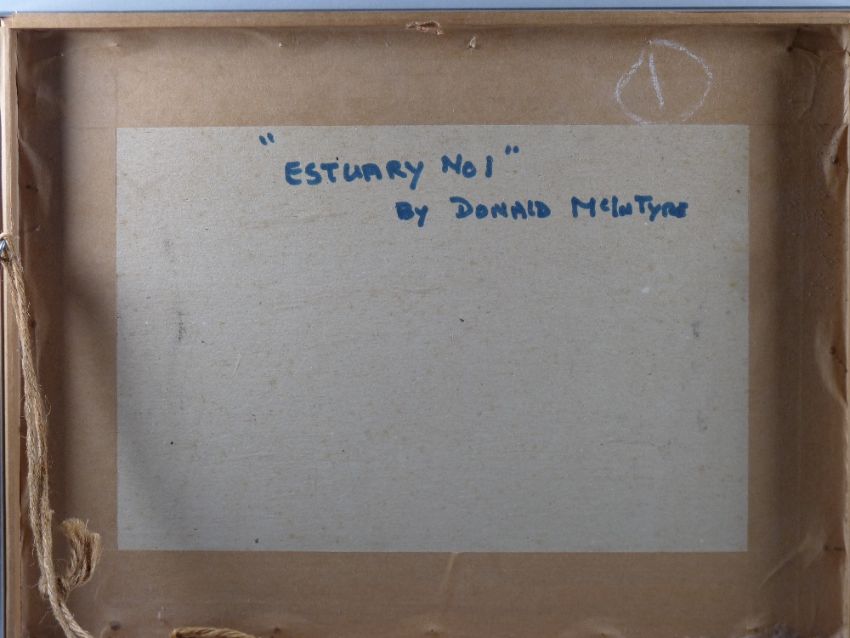 DONALD McINTYRE early mixed media - estuary scene with yachts, signed with initials and entitled verso 'Estuary No. 1', 16.5 x 29 cms