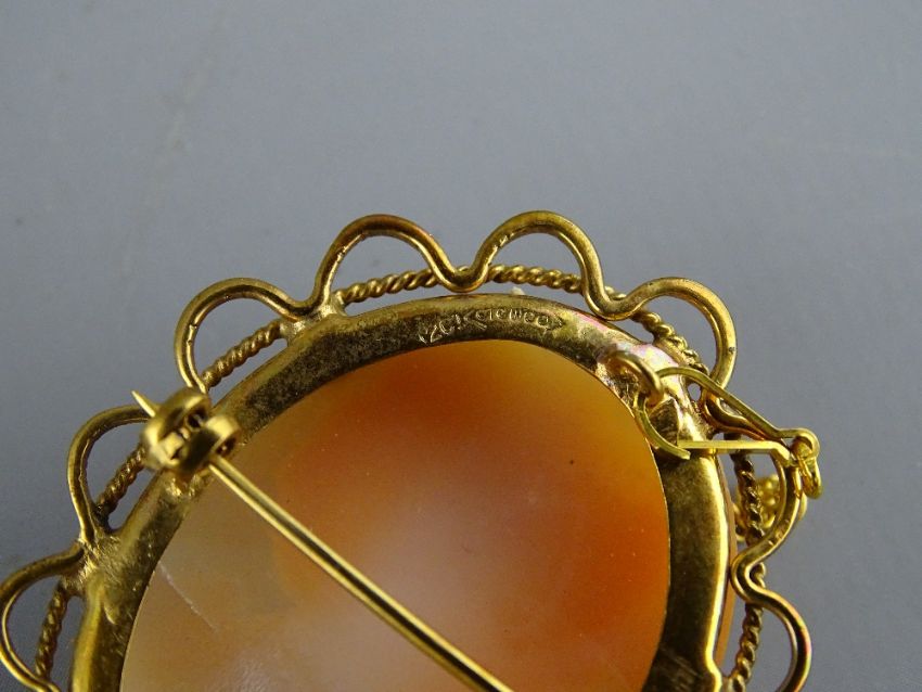 A TWELVE CARAT GOLD MOUNTED CAMEO BROOCH