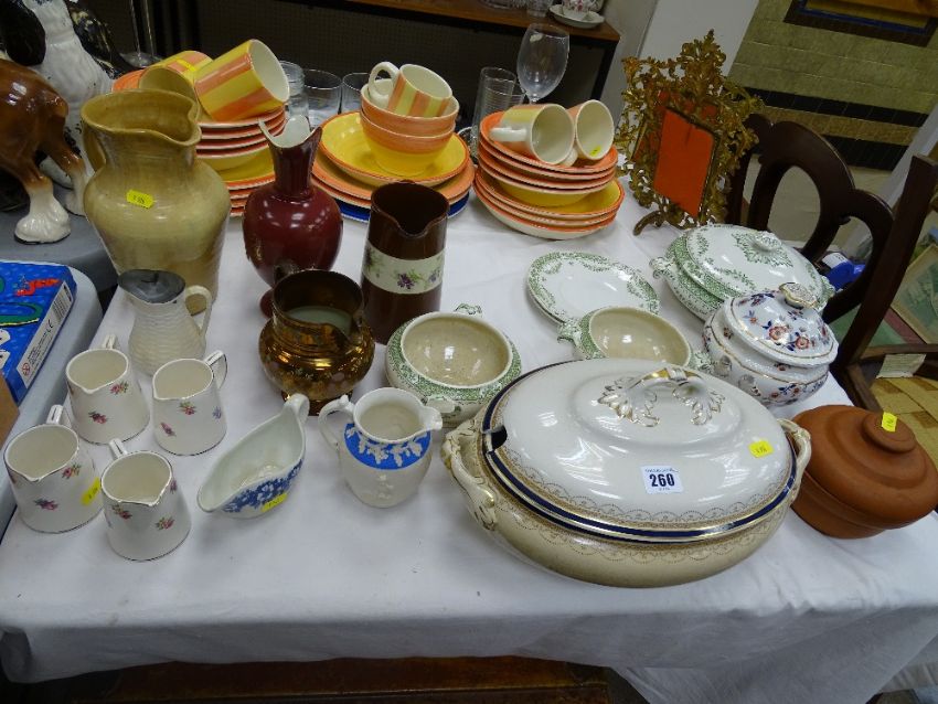 Large parcel of Staffs and other dinnerware including food servers, copper lustre etc