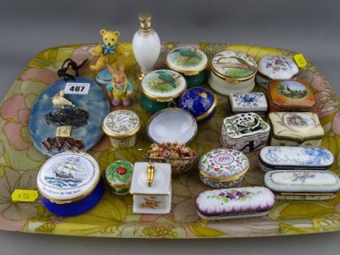Collection of porcelain and enamel type pill boxes by Limoges, Staffs Enamels, Halcyon Days etc