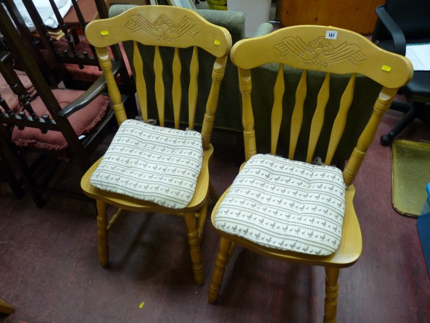 Pair of pine effect farmhouse chairs