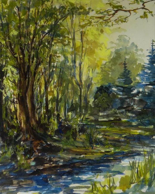 VALERIE GANZ watercolour - woodland scene, signed, 50 x 40cms
