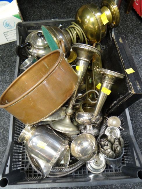 A parcel of EPNS, copper pan etc