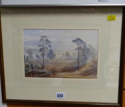 Framed watercolour of a misty landscape with trees by JONATHAN SAINSBURY, signed & dated 1993, 17 x 25cms