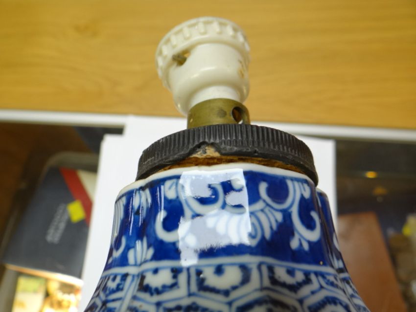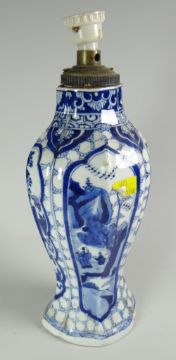 A nineteenth century Chinese blue & white vase of lobed form with four panels of decoration