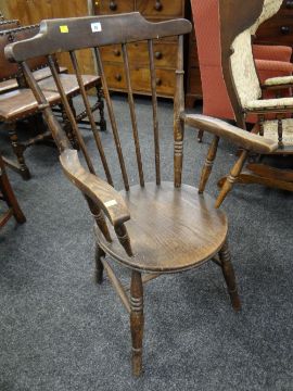 A circular seated spindle back country elbow chair