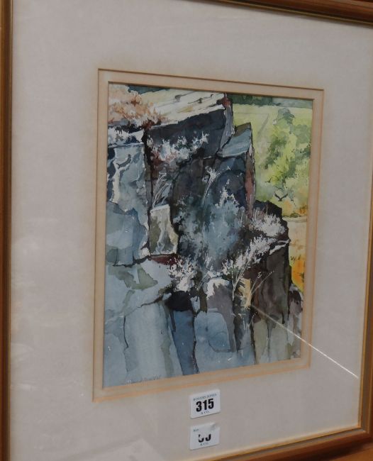 DAVID MORRIS framed watercolour of a rocky outcrop, 26 x 20cms
