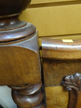 An antique mahogany elaborately carved bed-end with barley-twist supportscondition report:There is some general wear and there are no sides so I cant work out the length.The width is 138cms it probably is a double
