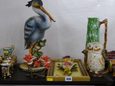 Tony Wood Studio owl teapot, Radford tall jug and a Capodimonte heron etc