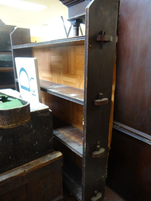 An open bookcase, an antique farmhouse table with end drawer & a modern linen fold TV cabinet