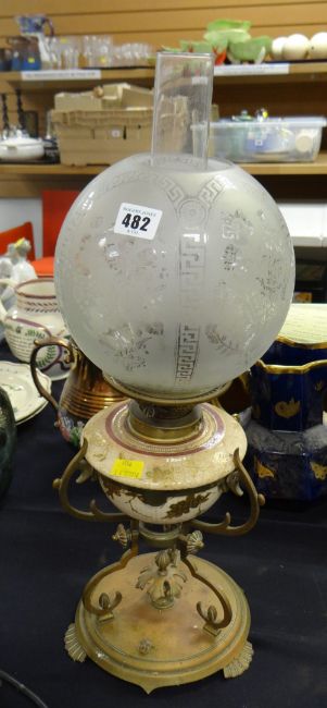 A brass & pottery antique oil lamp