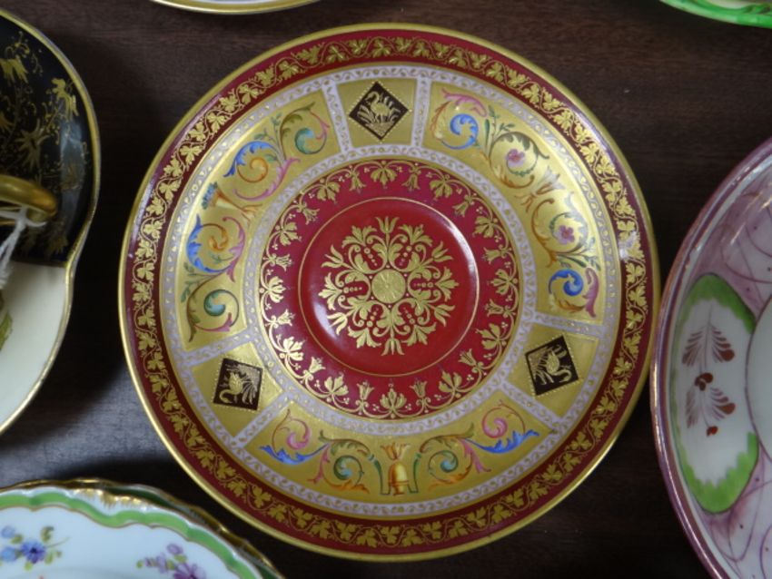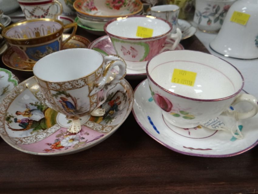 A collection of cabinet cups & saucers including Austrian examples, Coalport, pink lustre ETC