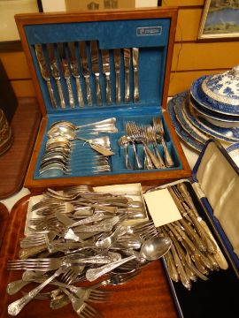 A cased canteen of Oneida cutlery & a quantity of loose cutlery ETC