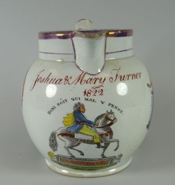 Sunderland-lustre marriage jug for Joshua & Mary Turner, 1822