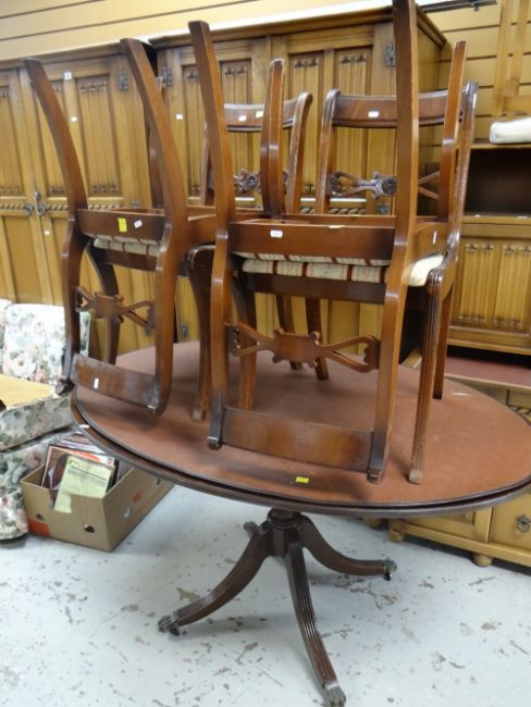 Four items of Stag Minstrel furniture & an oval mahogany dining table & four chairs