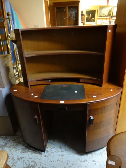 An unusual vintage oval kneehole desk together with a curved bookcase to match