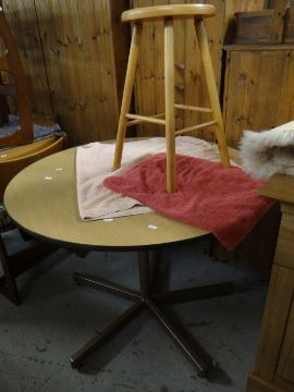 A modern sideboard, five rolls of modern carpets including sheepskin rug, an Italian-type musical table & a circular kitchen table with metallic tripod base and stool