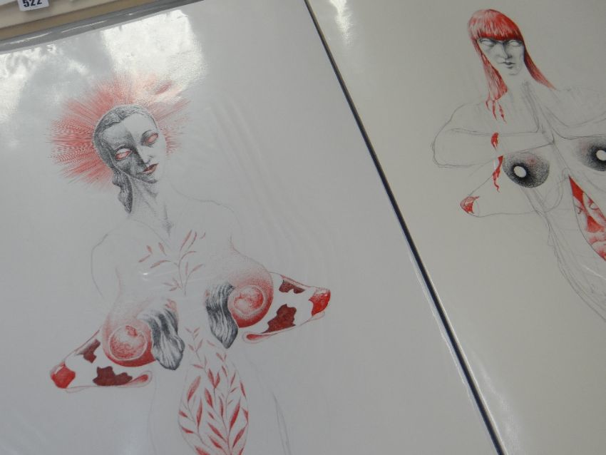 A portfolio of various RICHARD O'CONNELL Welsh themed drawings & work including women's rugby passports ETC