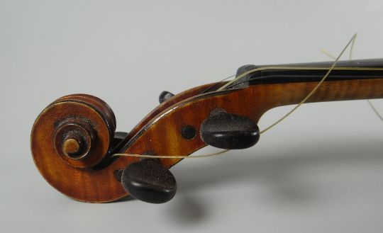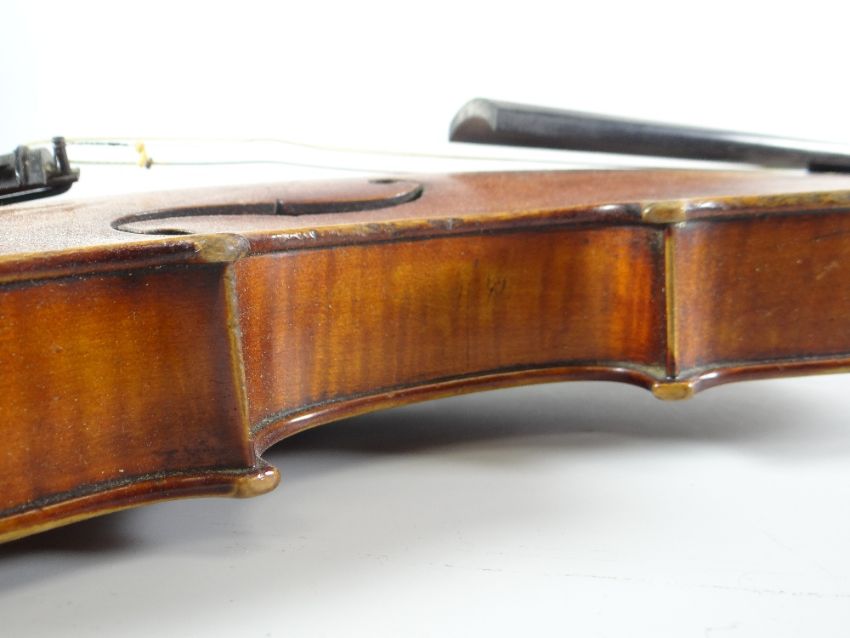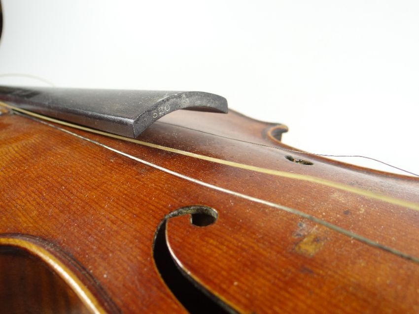 A nineteenth century French violin by Honore Derazey bearing label to the interior with the maker's name inscribed in italics & printed 'Honore Derazey Pere a Mirecourt' & with HD monogram, complete with case & bowBIDDERS: PLEASE BE AWARE THAT WE ARE NOT EXPERTS IN VIOLINS.WE HAVE ATTRIBUTED IT TO DERAZEY BECAUSE OF THE LABELS.PLEASE USE IMAGES TO ENSURE THAT YOU ARE SATISFIED WITH THE VIOLIN'S AUTHENTICITY & CONDITION.WE HAVE NO REASON TO THINK IT MIGHT NOT BE BY THIS MAKER BUT PLEASE DO NOT BID IF YOU HAVE ANY DOUBTS AS IT IS PURCHASED 'AS SEEN'.Provenance: from a Cardiff estateCondition Report:The length including the neck is 58.5cms, just the back not including the neck is 35cms.The strings are broken, there are a few light marks on the body otherwise it all looks good, there are no major issues or damage.
