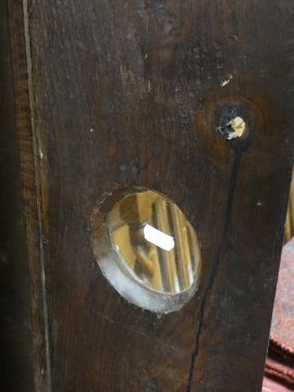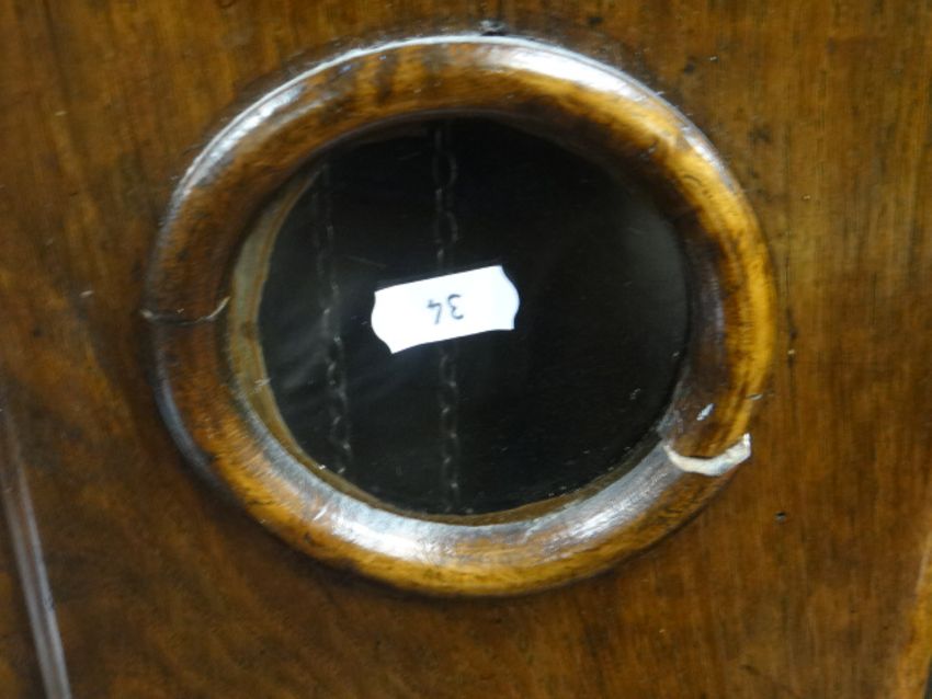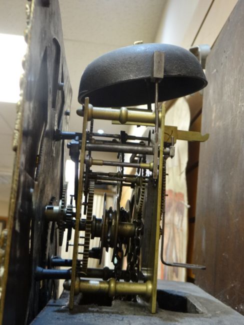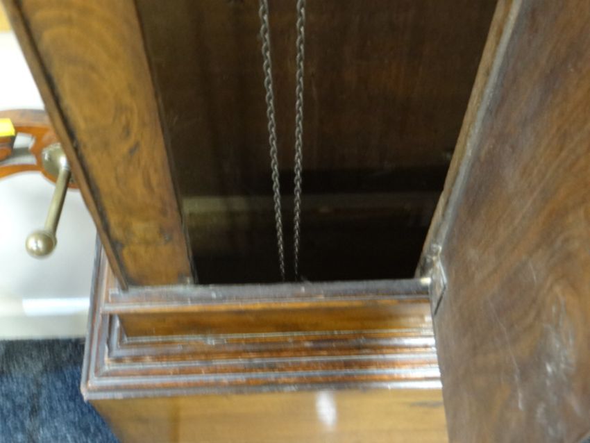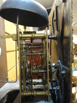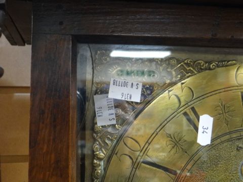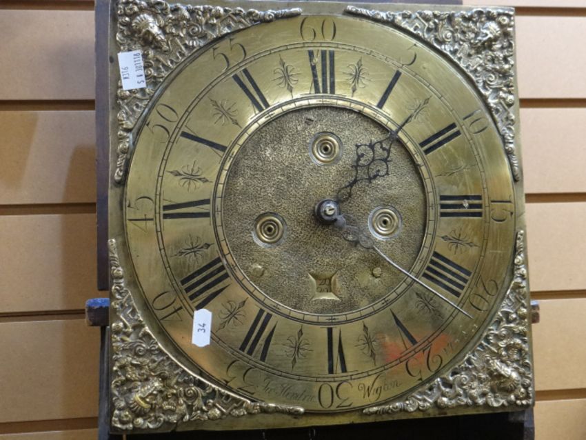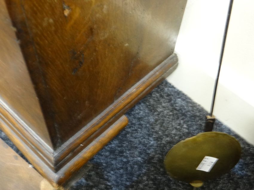 A George II oak encased brass dial longcase clock with Roman numeral chapter ring & with inscription for James Hendrie of Wigton and 1745 (later inscribed but probably correct) the trunk with glass porthole, 220cms high