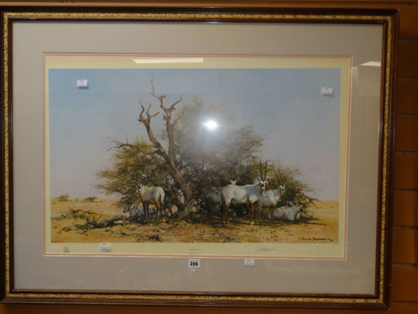 A signed & blind stamped DAVID SHEPHERD African wildlife print entitled 'Arabian Oryx'