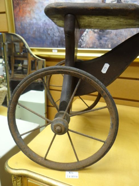 A naive vintage wooden & metal child's tricycle