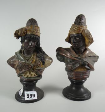 A pair of continental pottery Blackamoor busts