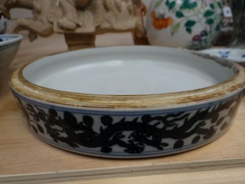 Condition Report: good overall condition however inner rim of base has significant chip to rim, surface wear a little grubby to base otherwise okay.
