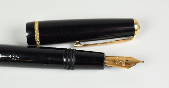 A VINTAGE BLACK PARKER DUOFOLD SENIOR FOUNTAIN PEN with original 14ct nib, in original box with instructions