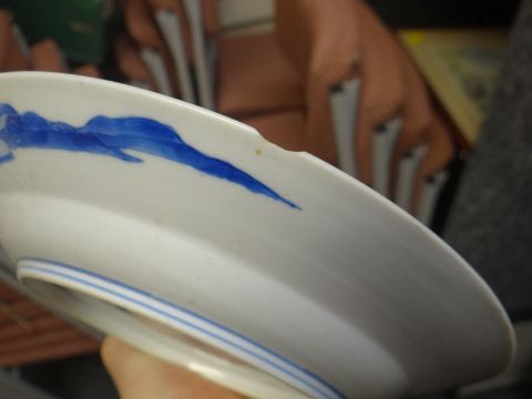 Condition Report: one has significant chip to rim, both have minor nibbles to base rim otherwise appear okay.