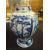 LARGE CHINESE PORCELAIN BLUE & WHITE BALUSTER VASE depicting gathering of figures in interior & exterior landscape with rough waves & sun in background within cloud borders, double blue concentric circles to base, 36cms high