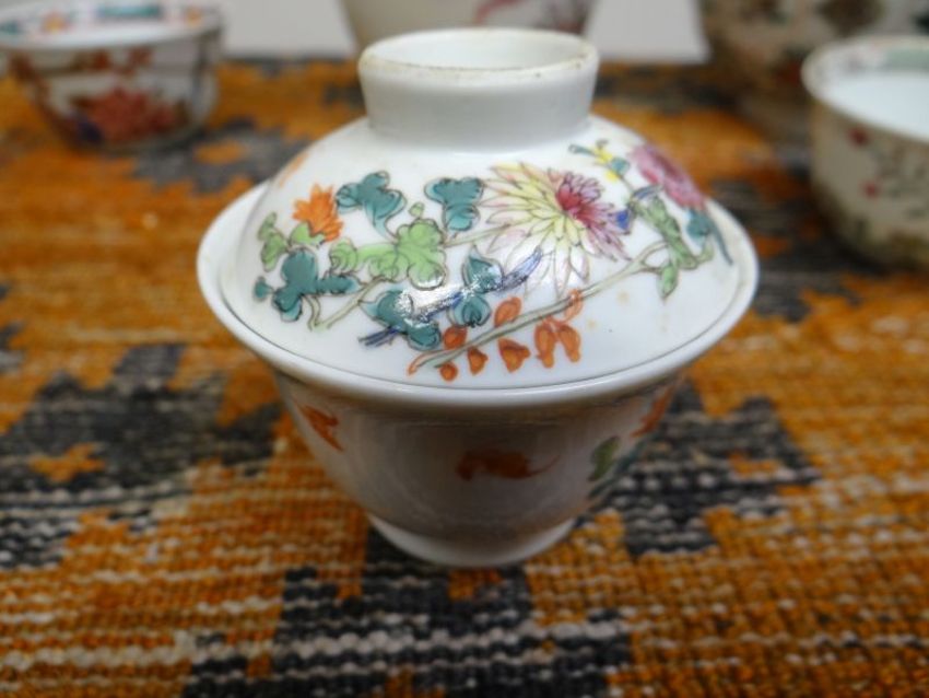 SELECTION OF CHINESE & OTHER PORCELAIN TEA BOWLS & SAUCERS to include Famille Rose, Famille Verte, Imari mainly of floral & figural decoration