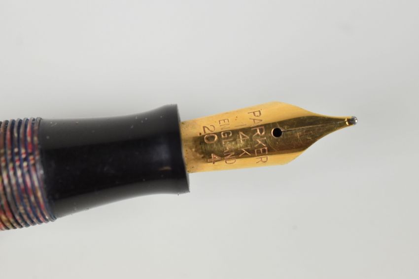 VINTAGE BASKETWEAVE ROSE SILVER & BURGUNDY PARKER VICTORY MK I (1941-1946) FOUNTAIN PEN with original nib & gold plated trim, boxed
