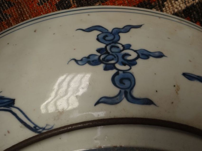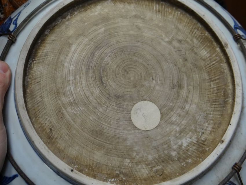 Condition Report: crack from rim down through to bottom of piece, minor chippings to edges & a little stain, otherwise okay.