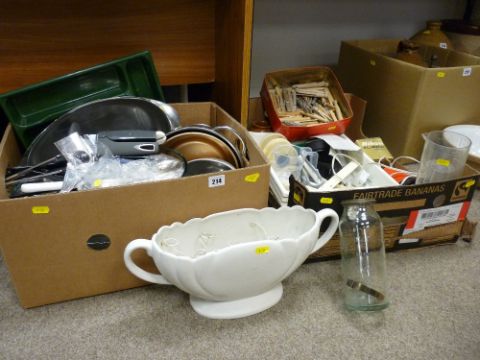 Two boxes containing large quantity of kitchen and household items