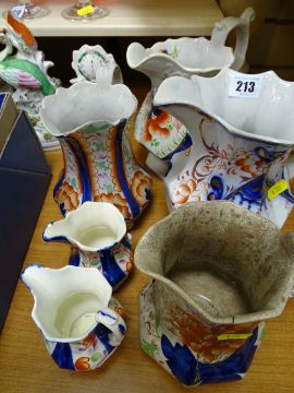Parcel of Dutch and Welsh Gaudy style jugs, condition variable