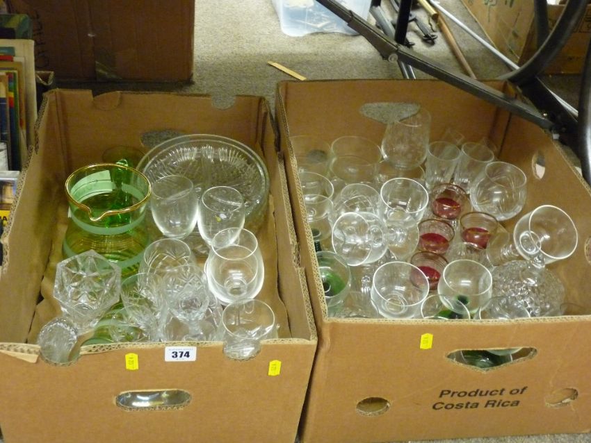 Two boxes of vintage drinking and other glassware