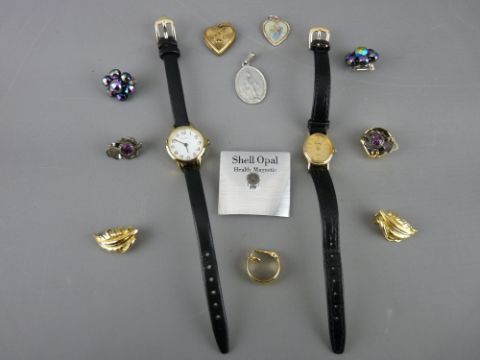 Two lady's Quartz wristwatches and a small parcel of clip earrings etc