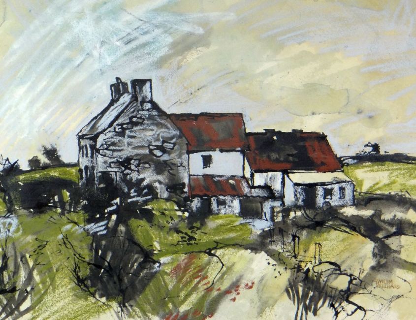 GWILYM PRICHARD (1931-2015) mixed media - untitled, Welsh cottage in a landscape, signed, 34.5 x 45cms