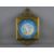 A 19th CENTURY CIRCULAR PORCELAIN HANDPAINTED PLAQUE in a gilt brass frame with leaf swag mounts, 40 x 24 cms overall