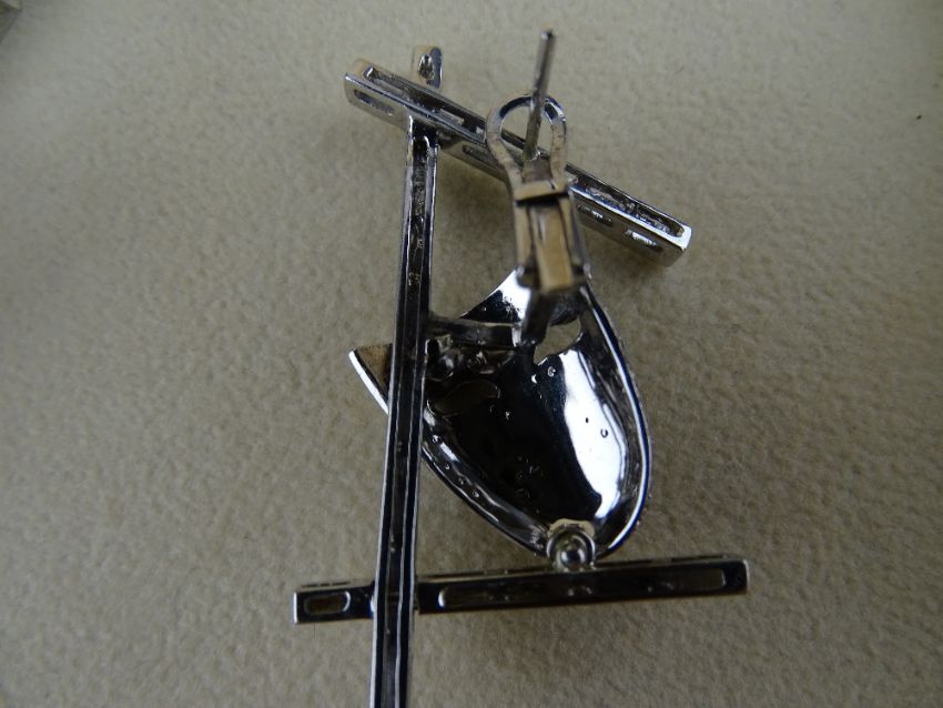 DHAMANI JEWELS COLLAR & EARRINGS SET, theatrical mask motif, diamonds and sapphires pave set, marked 750 eighteen carat white gold with rhodium and oxidised finish, all diamonds round brilliant cut, estimated total carat weight of diamonds 5.79 carats, blue sapphires round brilliant cut, estimated total carat weight 2.51 carats