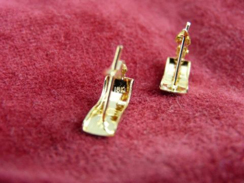 A PAIR OF EIGHTEEN CARAT TRI-COLOUR OBLONG SET EARRINGS, 1.4 grms