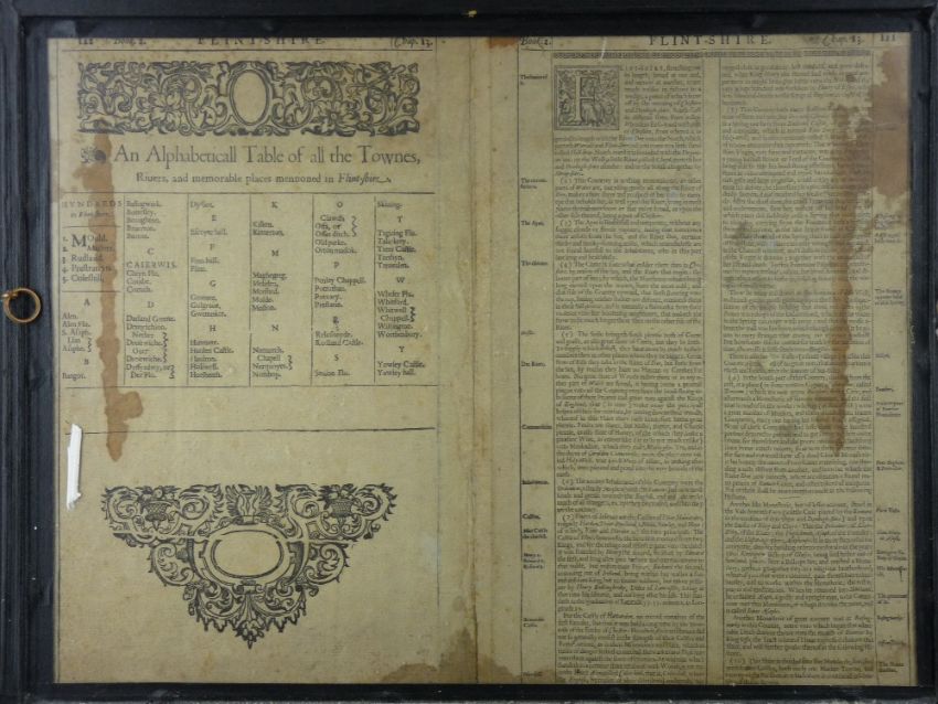 JOHN SPEED coloured and tinted map of Flint-shire, 1610, Sudbury & Humble edition, glazed verso, 39 x 51.5 cms