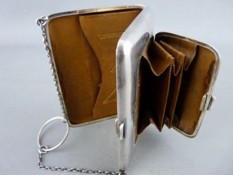 A LADY'S COMBINATION PURSE/WALLET, 4.5 troy ozs, Chester 1915, (hallmarks somewhat rubbed), 10.5 cms across