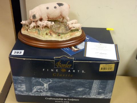 Boxed Border Fine Arts group of sow and piglets feeding