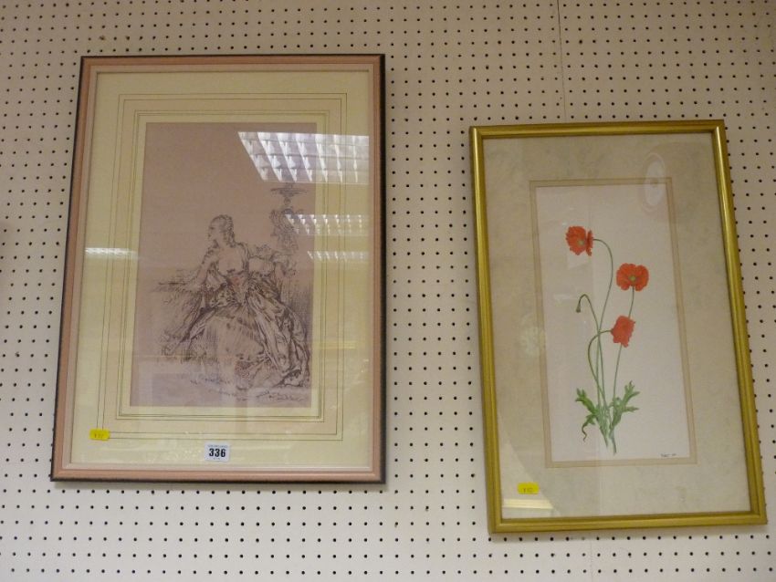 Parcel (three) watercolour and two prints - still life, lady and Oriental